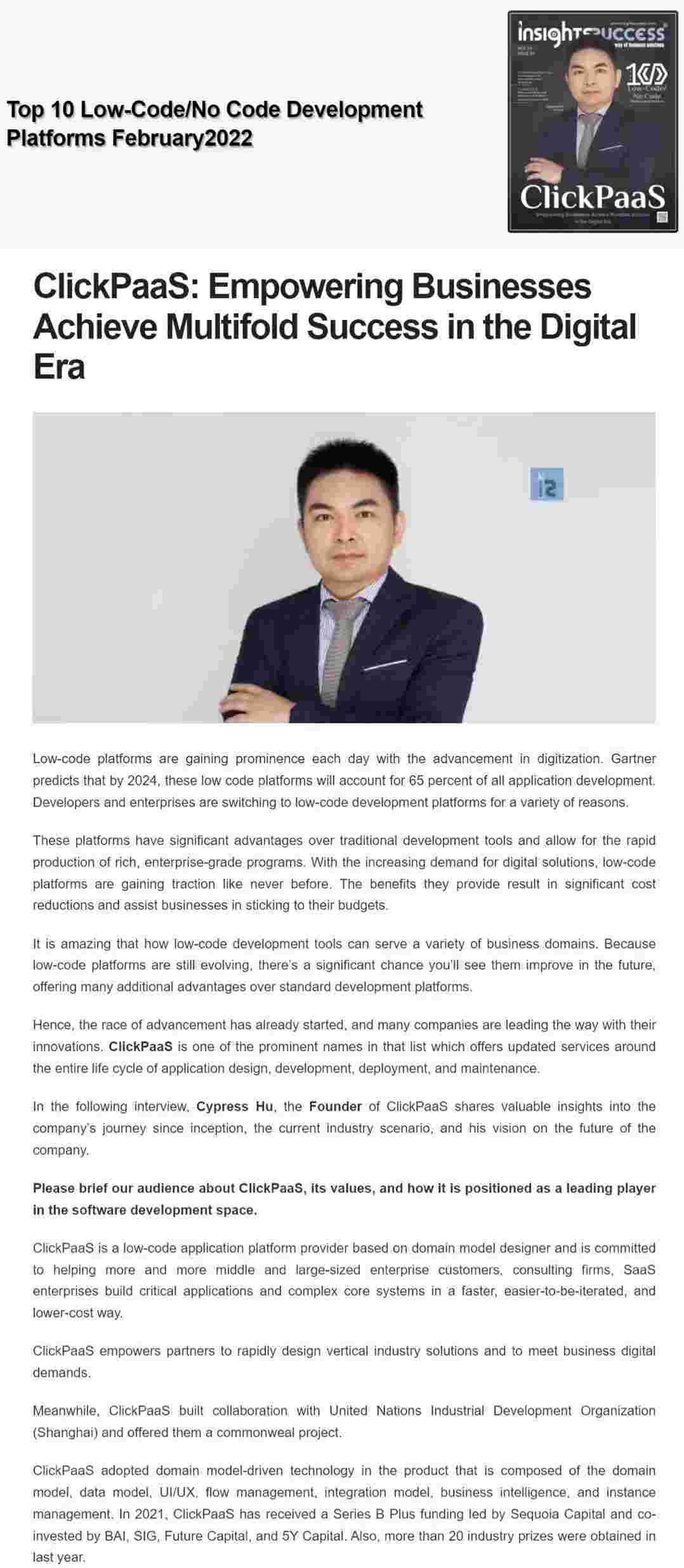 2022年年初,,,美团钱包商家版入选外媒Insights Success低代码/无代码开发平台 Top10,,,创始人、、、、CEO胡柏受邀接受专访并荣登封面人物,,,他与Insights Success的读者分享了美团钱包商家版成立的初心、、、、发展历程、、、当前的行业发展趋势以及他对公司未来的展望。。